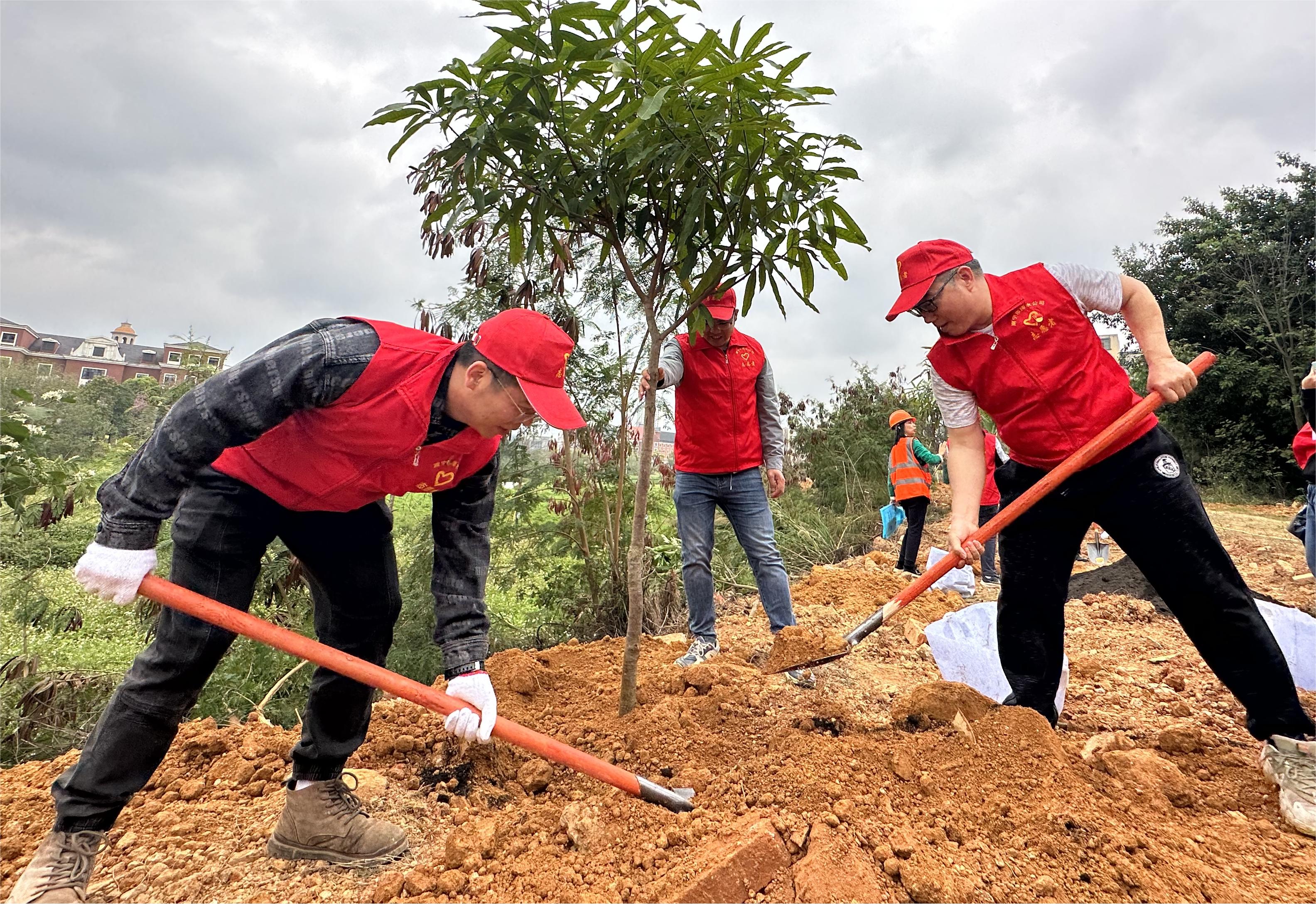 風和日暖,萬物生長,正是植樹添綠好時節(jié)。在邕江上游引水工程一期工程-可心江原水專線工程項目現(xiàn)場,志愿者們熱情高漲,按照專業(yè)人員講解的植樹要領(lǐng)進行分工協(xié)作。土壤殺菌、扶正樹苗、挖土填埋、澆水灌溉……各個環(huán)節(jié)銜接有序、配合默契,現(xiàn)場一派熱鬧的勞動場面。經(jīng)過大家的辛勤耕作,成功種下10棵扁桃樹苗。一棵棵小樹迎風而立,為春天增添了盎然生機,也播種下一份份綠色的希望。