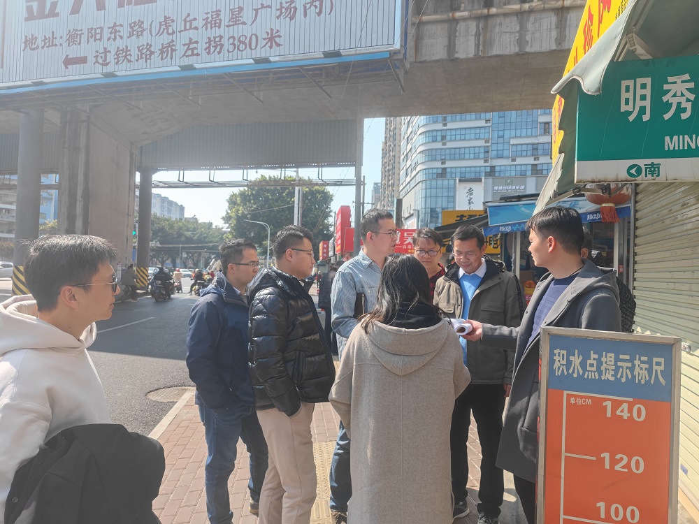 最后,周柏建一行來到秀田路、明秀路積水點現(xiàn)場,仔細了解積水點狀況及改造計劃。周柏建指出,可以考慮運用永久工程+臨時工程相結合的方式解決積水問題,以保障汛期市民出行安全。運維部門要排查明秀路東路雨水管,及時清淤疏通,力爭汛期前達到雨季雨水盡量不壅水至路面的效果,最大程度改善雨季路面積水問題。
