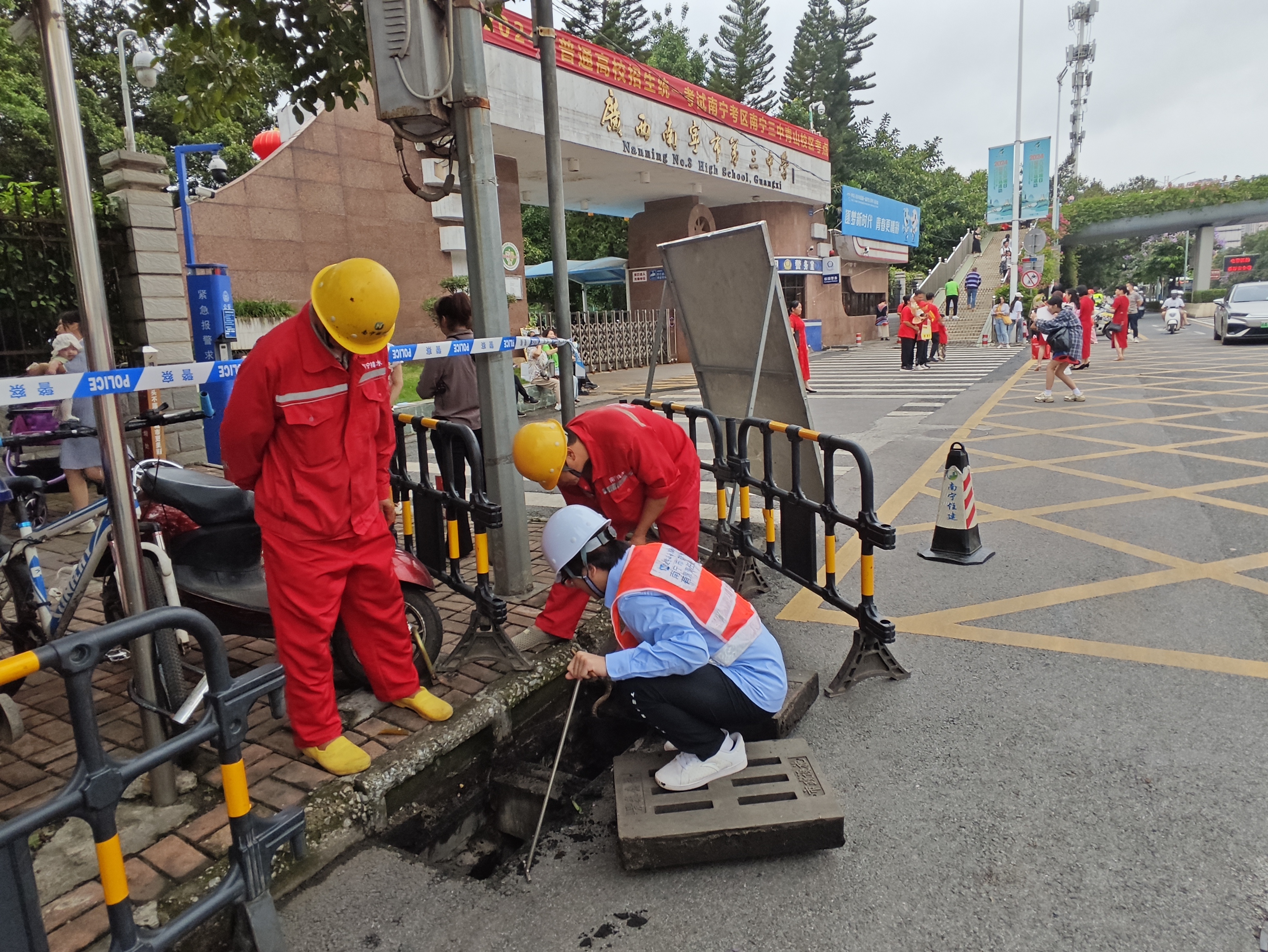 面臨考驗(yàn)的不僅僅是高考考生,還有整裝待發(fā)的排水工作人員。一大早,在各個(gè)考點(diǎn)周邊,能發(fā)現(xiàn)不少排水工作人員的身影,他們在7日凌晨就已經(jīng)就位,時(shí)刻準(zhǔn)備著為考生做好各項(xiàng)護(hù)航服務(wù)。