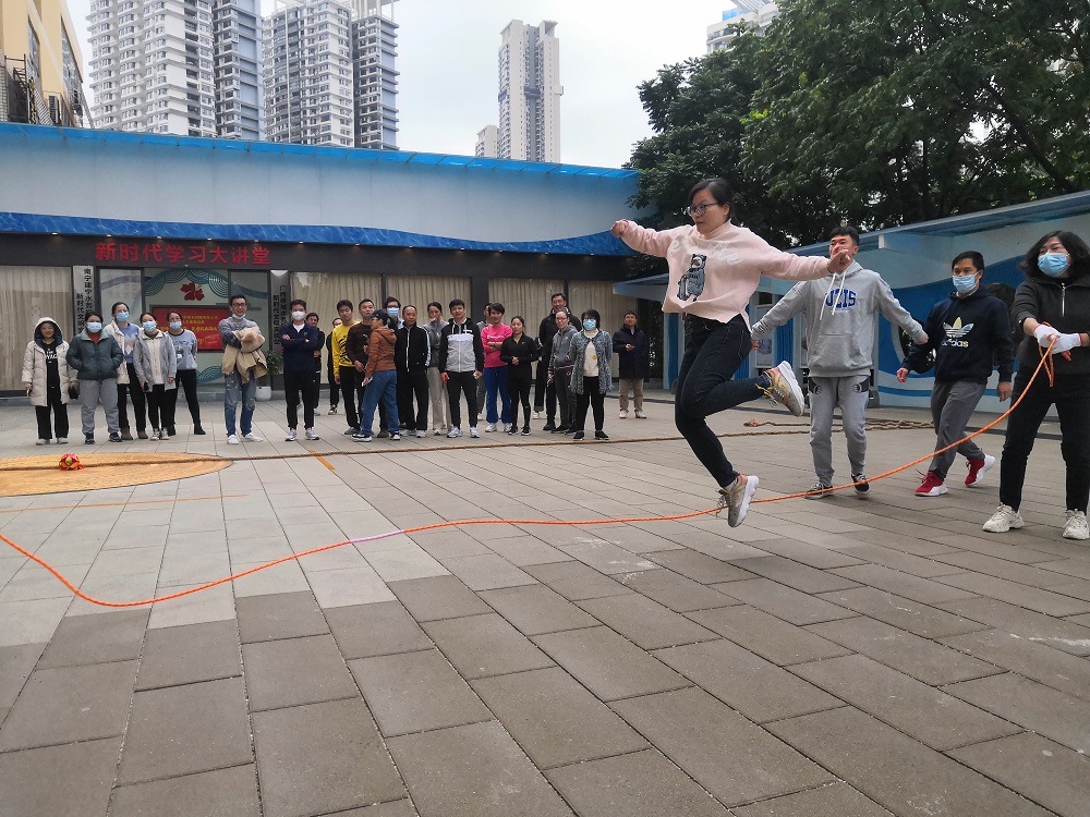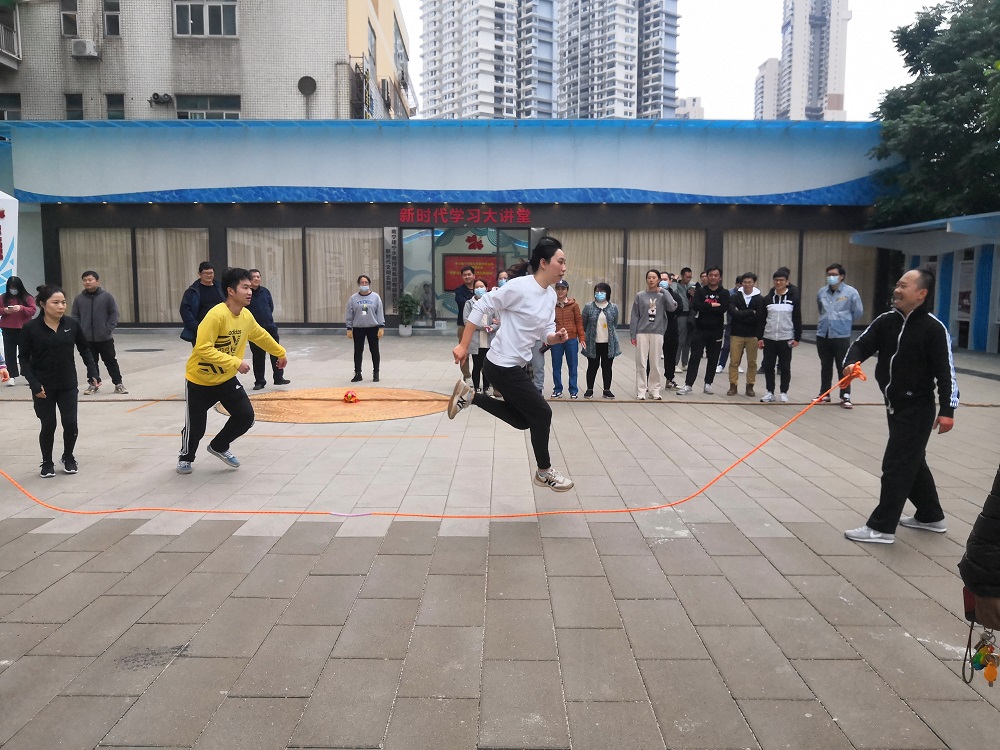 活動(dòng)第二個(gè)環(huán)節(jié)是運(yùn)動(dòng)會(huì),設(shè)有跳大繩和拔河兩個(gè)團(tuán)體項(xiàng)目,共40名運(yùn)動(dòng)員參加比賽。團(tuán)體項(xiàng)目講究隊(duì)員間的協(xié)調(diào)配合,在跳大繩環(huán)節(jié),參賽選手們經(jīng)過(guò)簡(jiǎn)單的練習(xí)便迅速進(jìn)入了狀態(tài)。隨著長(zhǎng)繩上下飛舞,選手們看準(zhǔn)時(shí)機(jī),一個(gè)接一個(gè)跳起、躍過(guò),干凈利落。拔河項(xiàng)目中,選手們各個(gè)精神飽滿、整裝以待。隨著裁判員一聲令下,參賽選手們鉚足全身的勁兒,力往一處使,繡球在中線兩端來(lái)回移動(dòng),扣人心弦。